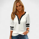 Combina un estilo sport con elegancia moderna. Con escote en V, cremallera y llamativos bloques de color, es perfecta para destacar con comodidad todo el día.