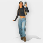 La combinación perfecta entre estilo y confort. Estos jeans de cintura baja ofrecen un ajuste favorecedor y un tejido suave y transpirable que mantiene la comodidad todo el día. Ideales para looks casuales o más sofisticados, son fáciles de cuidar y perfectos para el uso diario.
